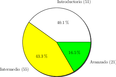 y por niveles de cursos (Introductorios, Intermedios, Avanzados y Proyectos).